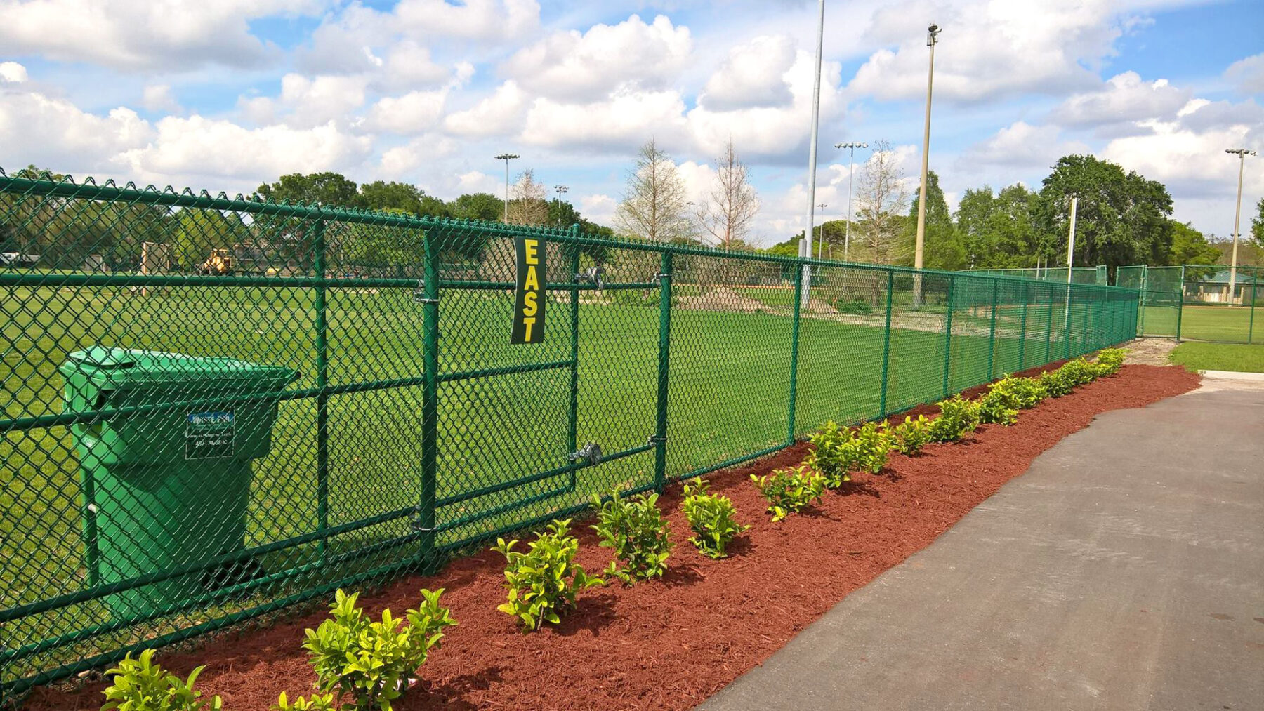 Custom chain link fences and matching gates for all applications — from backyards to athletic fields